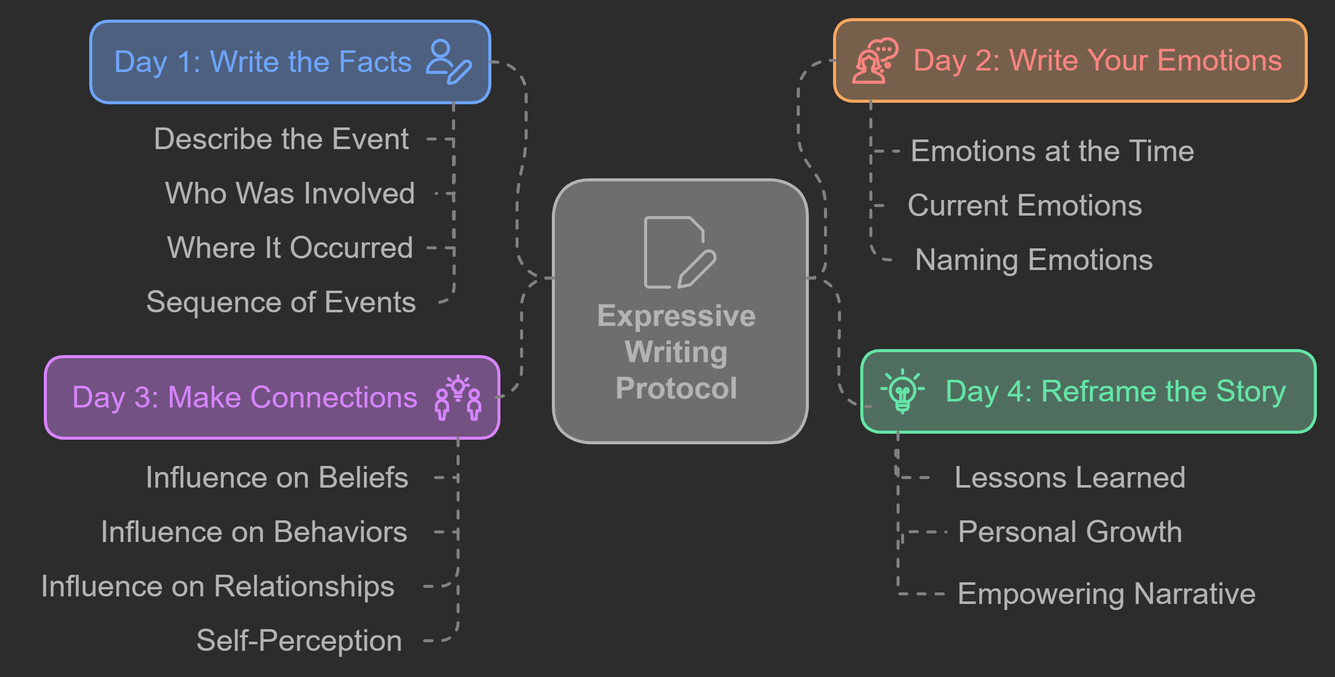 Then, I stumbled across a technique that seemed almost too simple to work: the Expressive Writing Protocol. Developed by Dr. James Pennebaker, this approach invites you to write about a meaningful emotional experience for just 15–20 minutes a day over four consecutive days.